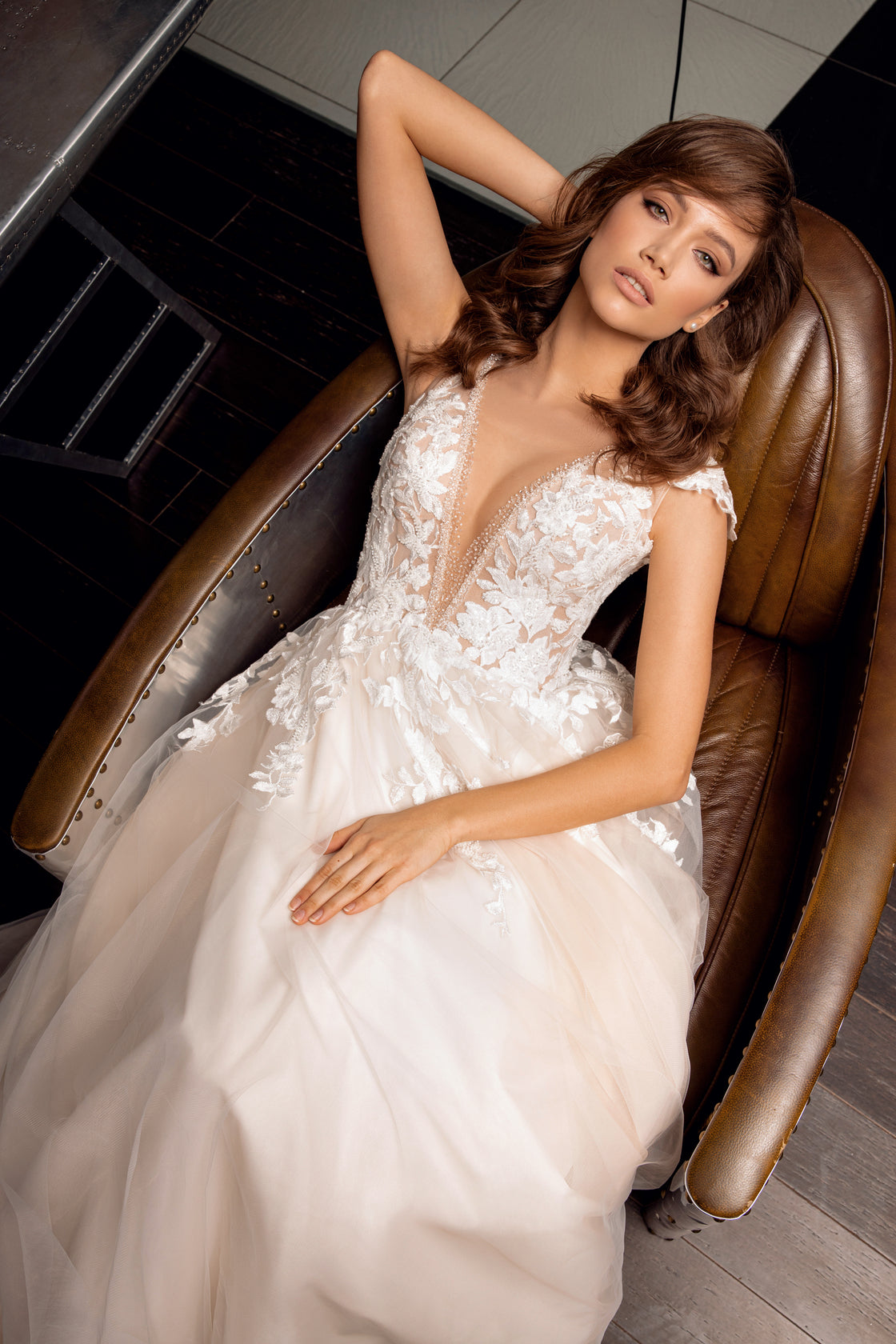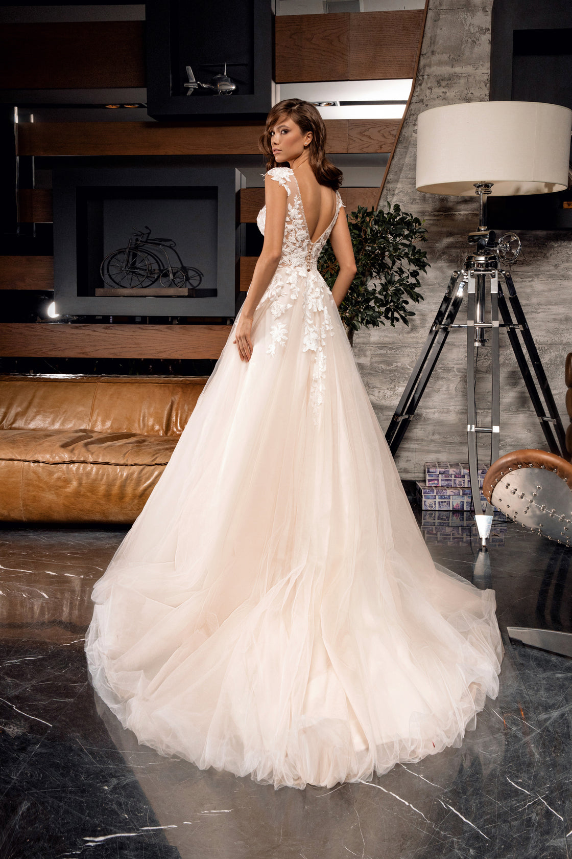 Color and materials: nude transparent corset with ivory lace, nude tulle skirt