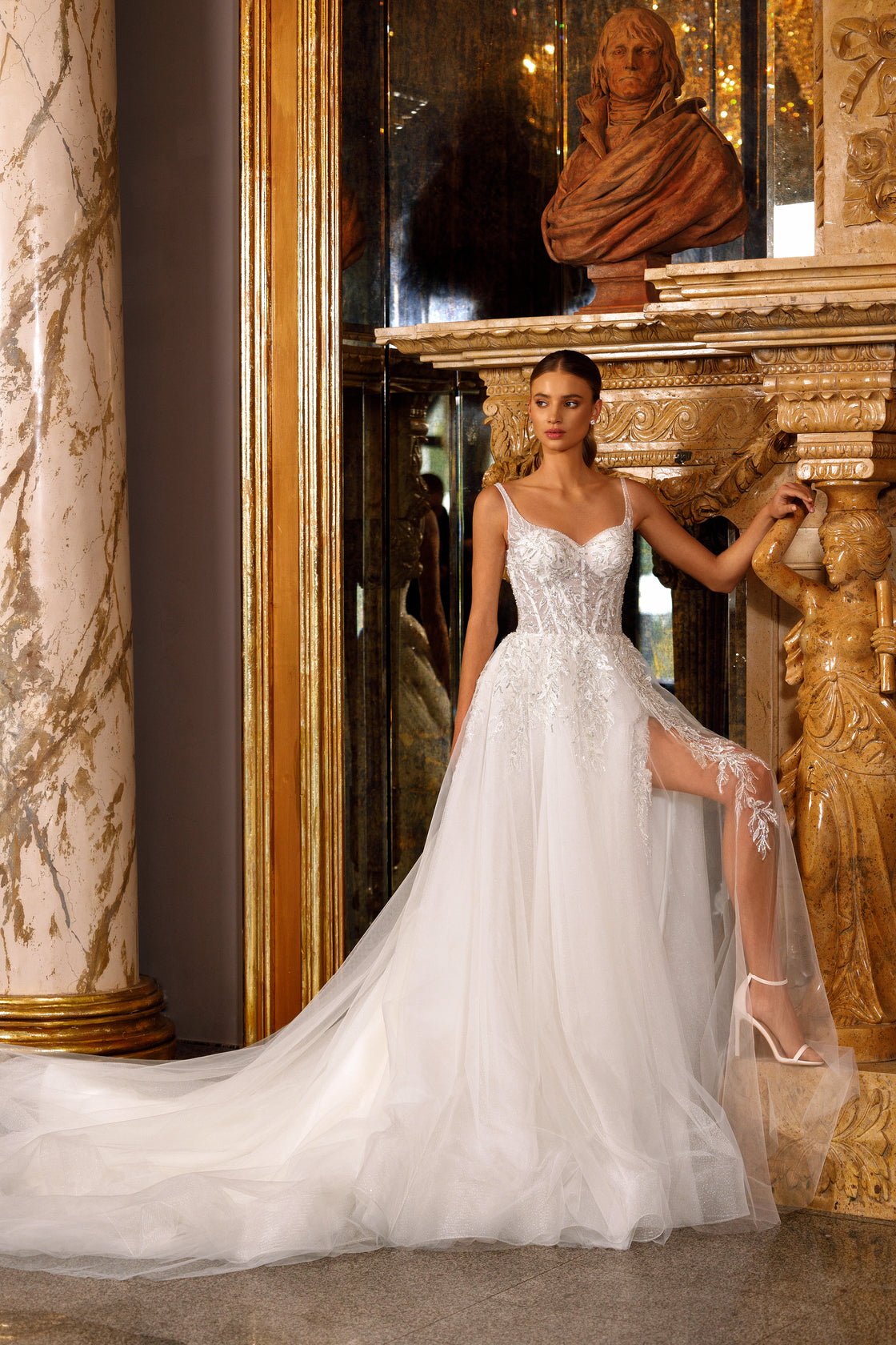 Type of wedding dress: A-silhouette on thin straps.