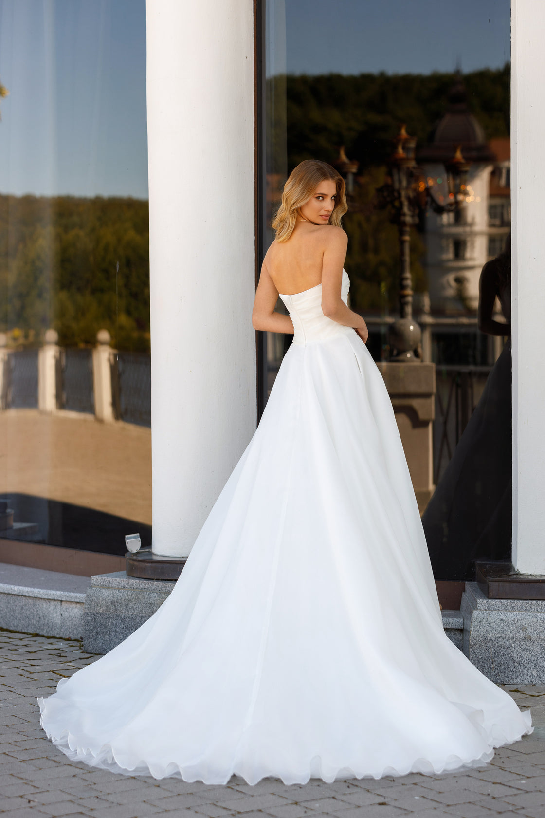 Color and materials: Ivory organza dress. Corset has original drapery.