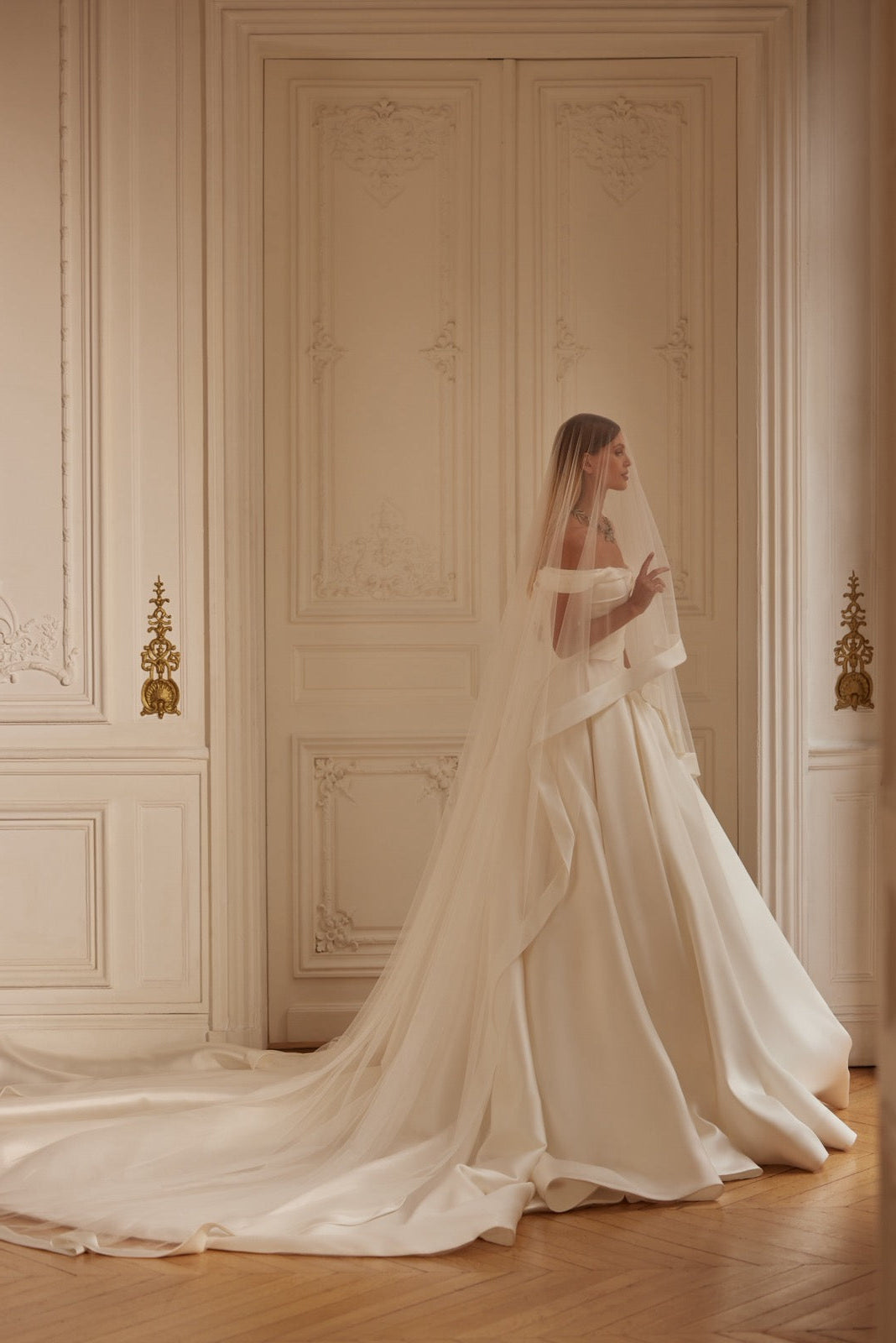 • Decoration: Minimalist design with a clean-cut edge — no embellishments, allowing the gown and silhouette to shine